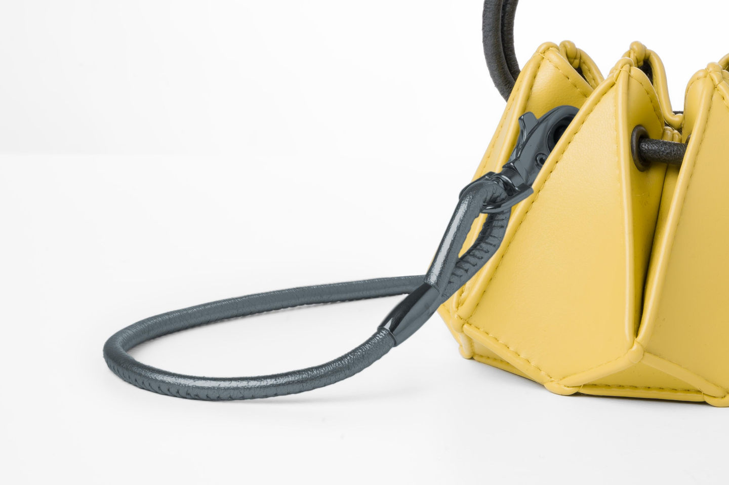 The Rock mini is a stunning statement bag with a unique diamond-inspired silhouette. Designed for both style and functionality, it features the patented Carat23® “loop handle technique,” allowing effortless access to your bag while keeping your hands free for any occasion. Perfect for carrying all your essentials in style. Transform your outfit with this timeless piece that combines elegance, innovation, and sustainability.